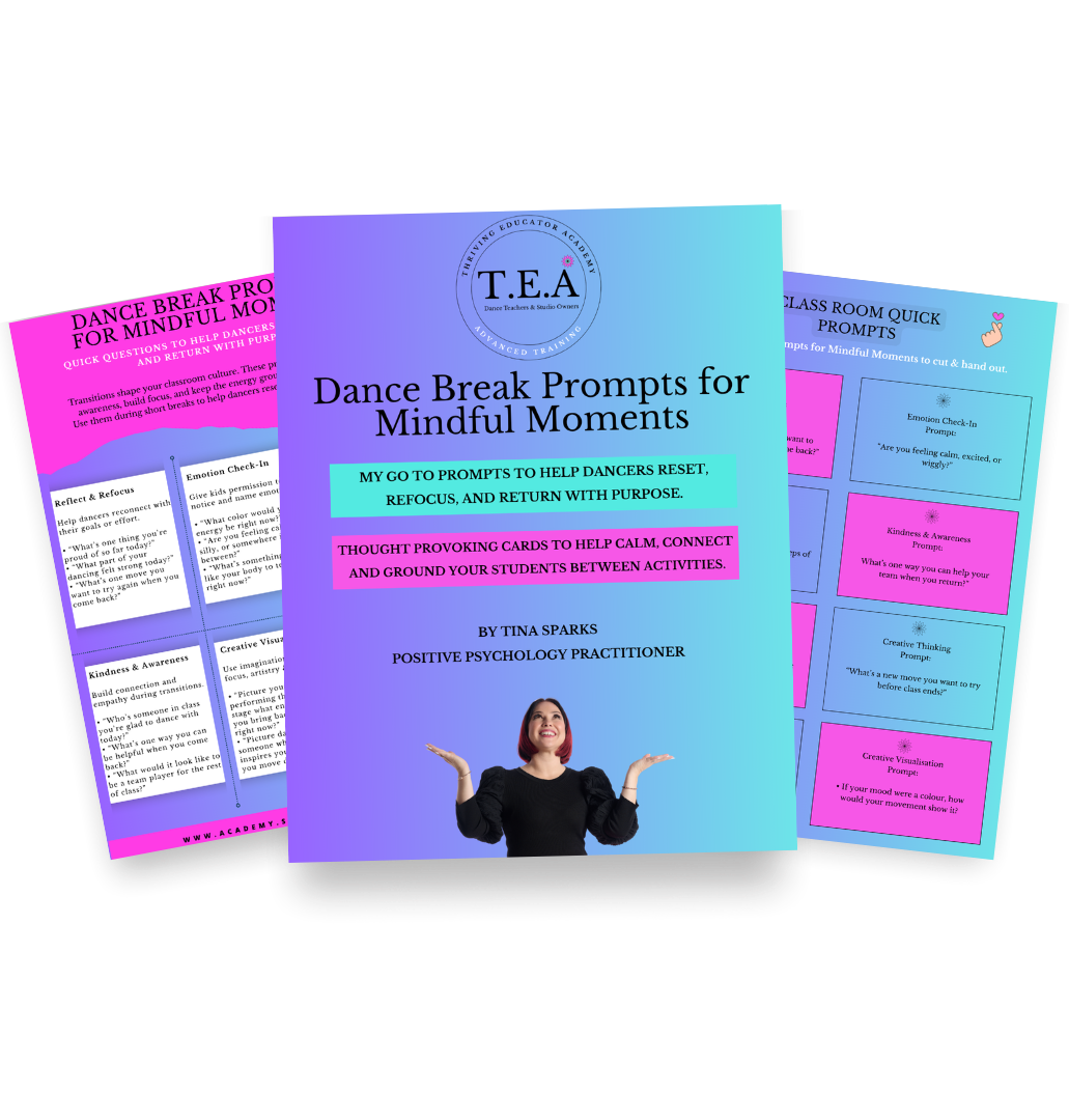A calming toolkit for dance educators who want to support emotional awareness, focus, and resilience - one mindful pause at a time.